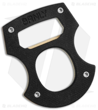 - Black micarta on the face and brass on the back.