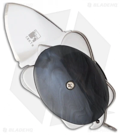 The CRKT Ashworth Turtle 5910A has a polished stainless steel spear point blade. Just press the blade tang to open with either hand.
