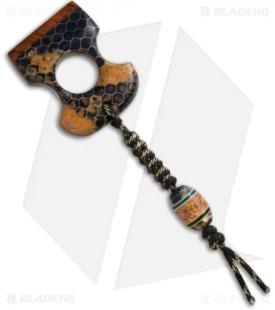 Turning wood into art is what Martin Custom Woodworks has done with this single-hole knuckle. It features the traditional look of ironwood fused with the high-tech look of Alicomb, an aluminum “honeycomb” mesh grid impregnated with resin. It includes a tied lanyard with decorative egg bead. The crafstmanship of this piece can only be truly appreciate in hand. You’ll only find this exclusive knuckle here at Blade HQ.