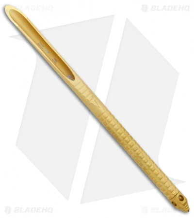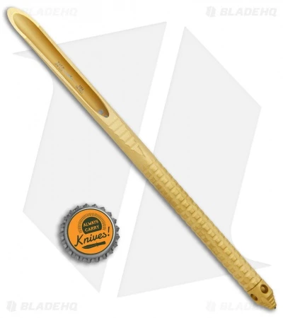 The Microtech TAC-P is a tactical spike with a wicked U’ needle tip. The handle is jimped for a sure grip and it features a glass breaker and lanyard hole. This one has a gold finish. It includes a carbon fiber print kydex sheath with a belt attachment.