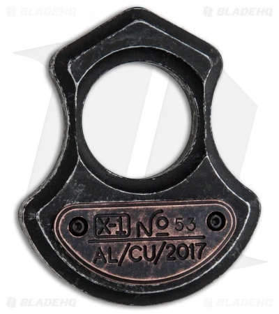 The X-1 Knuck features a refined design from knife-maker Serge Panchenko. It’s made from tumbled black aluminum with a patina copper plate on the front side. The ample 1″ hole will fit most hand size, with a rounded base for a comfortable grip. Item comes in a durable tumbled finish with an engraved Panchenko logo on the back.